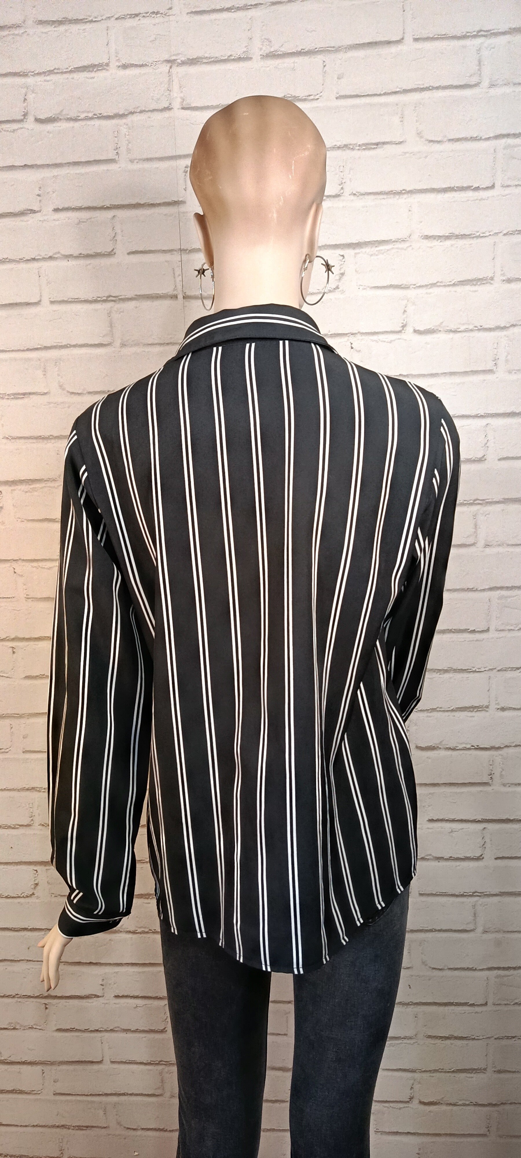 Chemise à rayures noires et blanches, en taille 36. Son motif rayé intemporel apporte une allure élégante et moderne. La coupe soignée souligne la silhouette tout en offrant un confort optimal. Confectionnée dans une matière agréable à porter, elle est dotée d’un col classique et d’une fermeture boutonnée. Facile à associer, cette chemise se porte aussi bien avec un pantalon habillé qu’un jean pour un style chic et polyvalent.