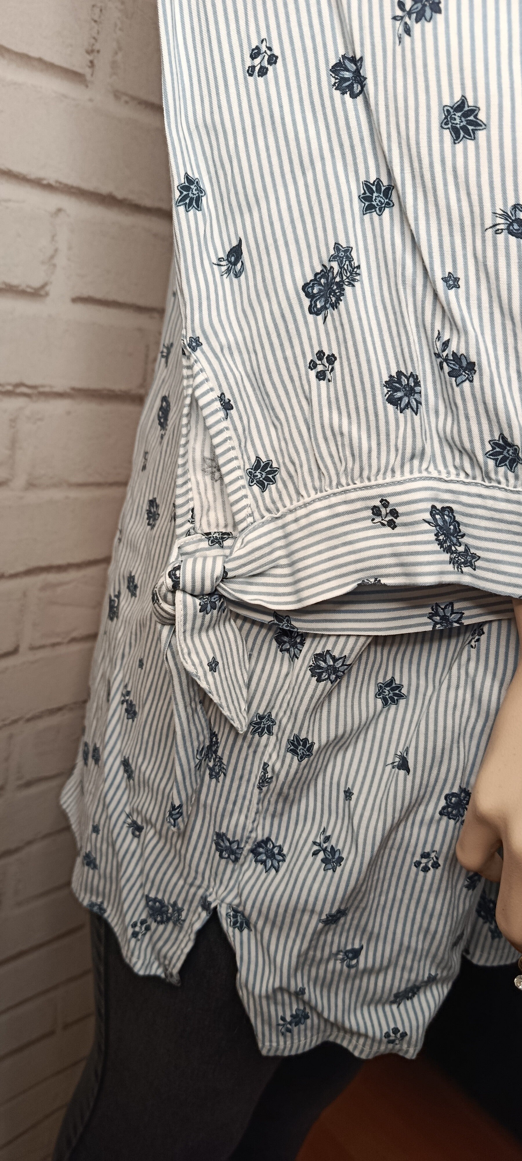 Chemise blanche fleurie à rayures, en taille 56, alliant élégance et originalité. Son motif mêlant délicates fleurs et rayures apporte du caractère tout en restant harmonieux et raffiné. La coupe confortable est pensée pour offrir une belle aisance au porter, idéale au quotidien. Confectionnée dans une matière agréable, elle est dotée d’un col classique et d’une fermeture boutonnée. Une pièce facile à porter, parfaite pour un style soigné avec une touche de fantaisie.