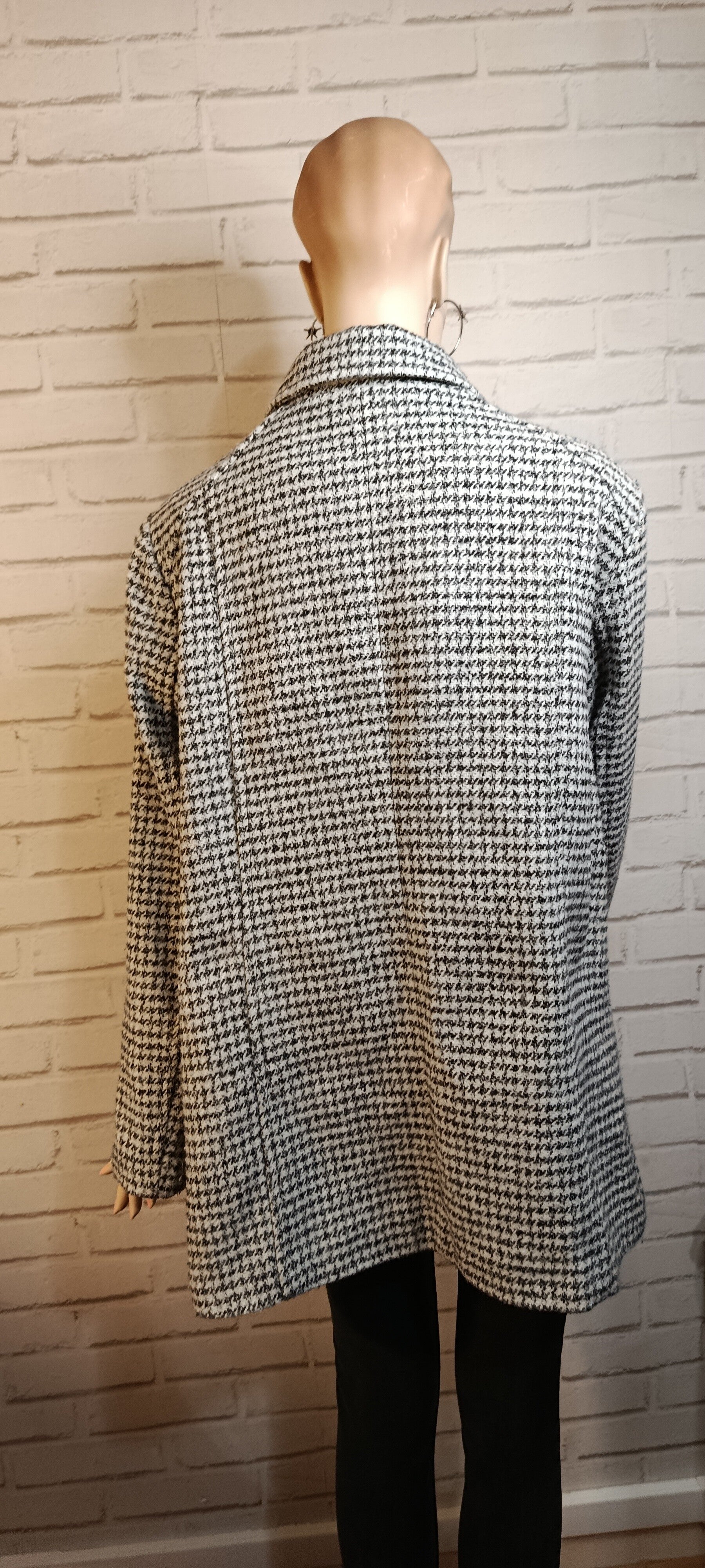 Manteau à motifs pied-de-poule noirs et blancs, en taille 50, au style chic et intemporel. Son imprimé graphique emblématique apporte une élégance classique, facile à associer à de nombreuses tenues. La coupe structurée offre une belle tenue tout en garantissant confort et aisance au porter. Confectionné dans une matière agréable et chaude, il est doté de finitions soignées, avec col élégant et fermeture pratique. Un manteau idéal pour une allure raffinée, aussi bien au quotidien que pour des occasions plus habillées.