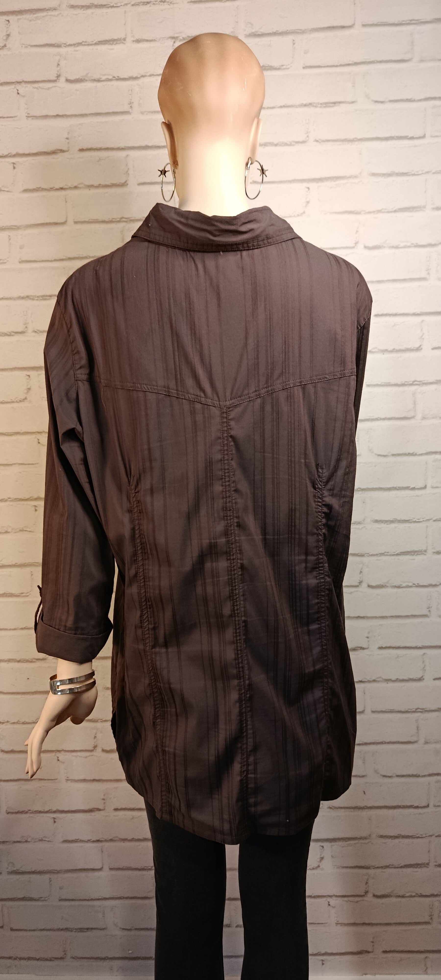 Chemise femme longue de couleur marron, à la coupe fluide et confortable.