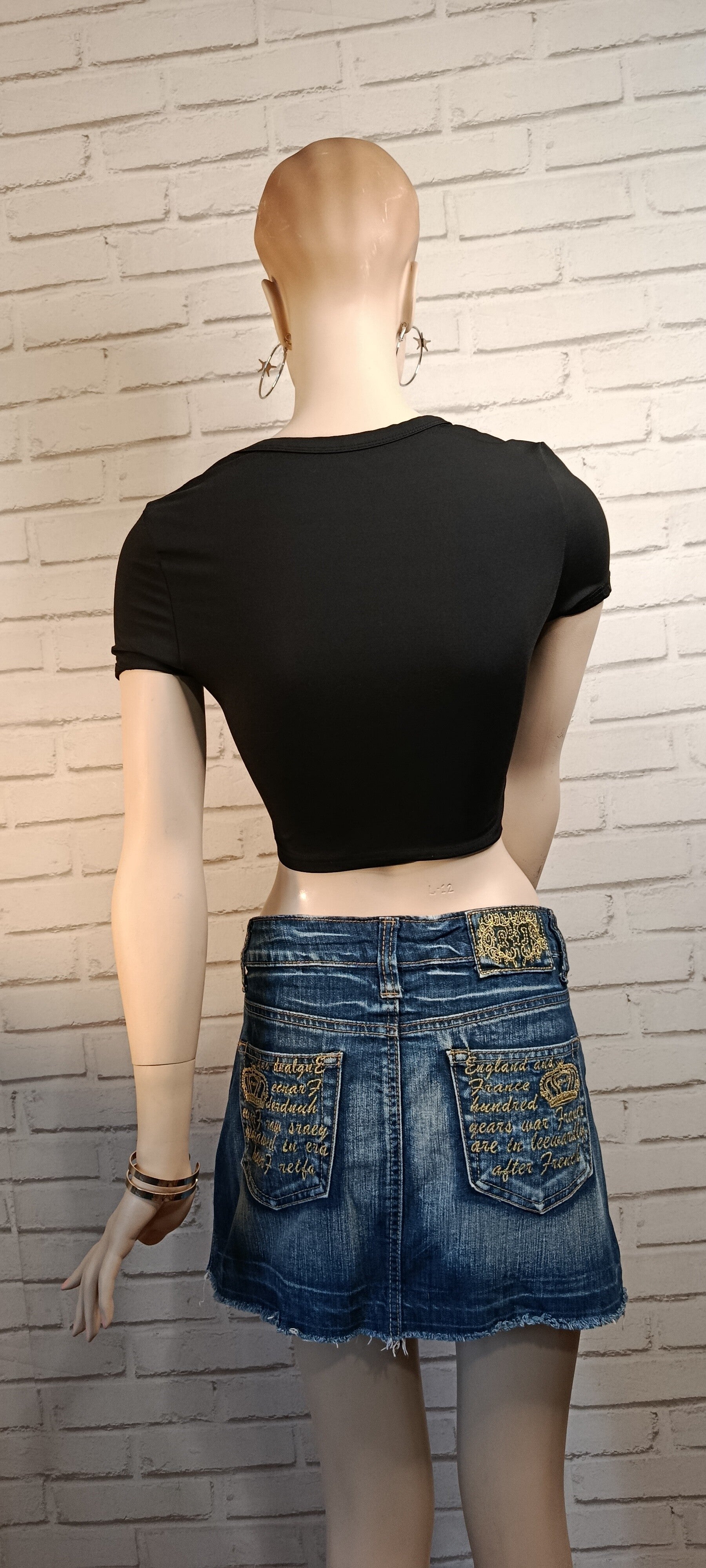 Jupe courte femme en jean denim vintage, au style affirmé et original.