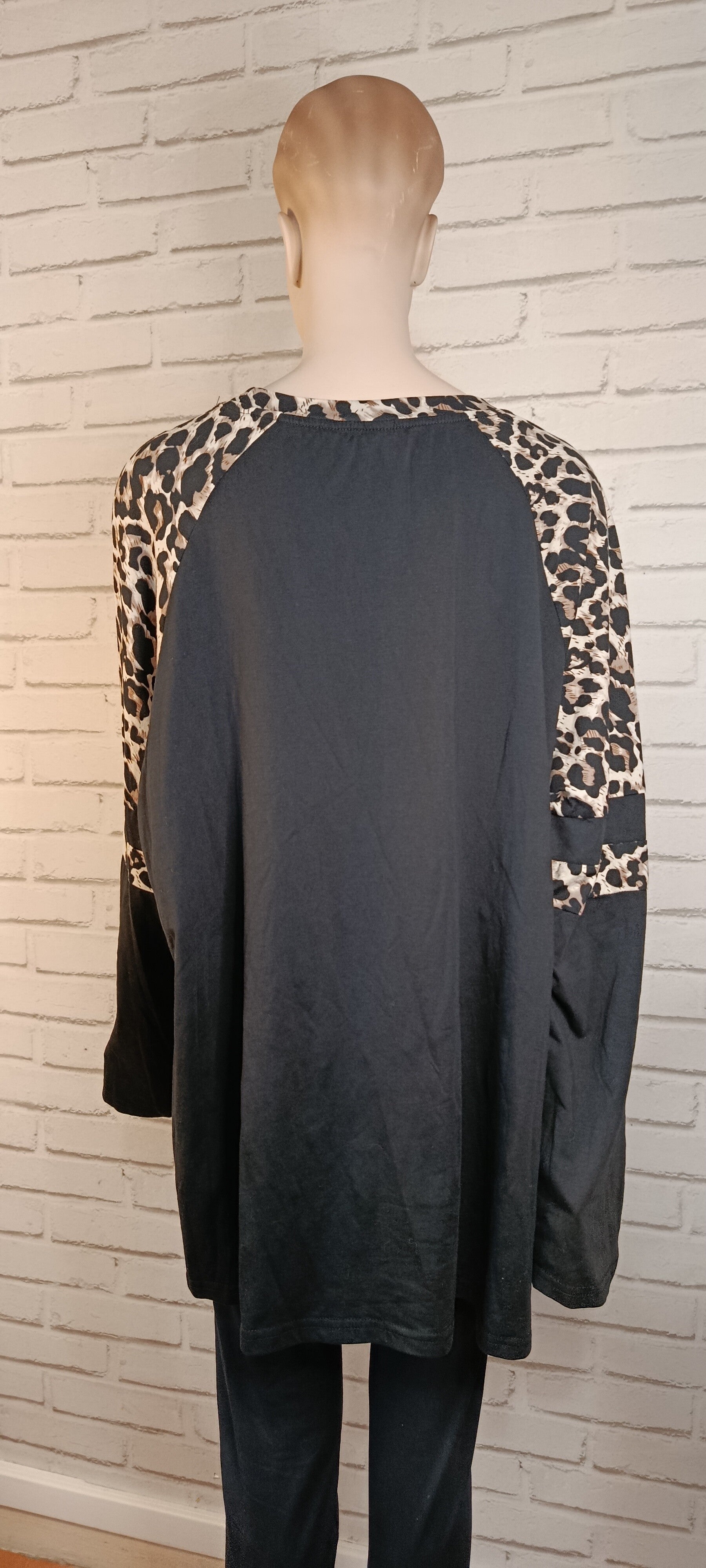 C’est un t-shirt à manches longues en taille 48, de couleur noire, parfait pour une tenue casual ou légèrement habillée.