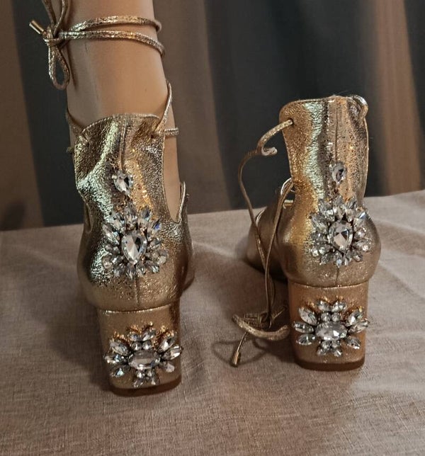 À l’arrière, chaque escarpin est orné de bijoux scintillants, apportant un détail luxueux qui attire le regard — parfait pour les soirées, les événements spéciaux ou toute occasion où une touche d’éclat est souhaitée.