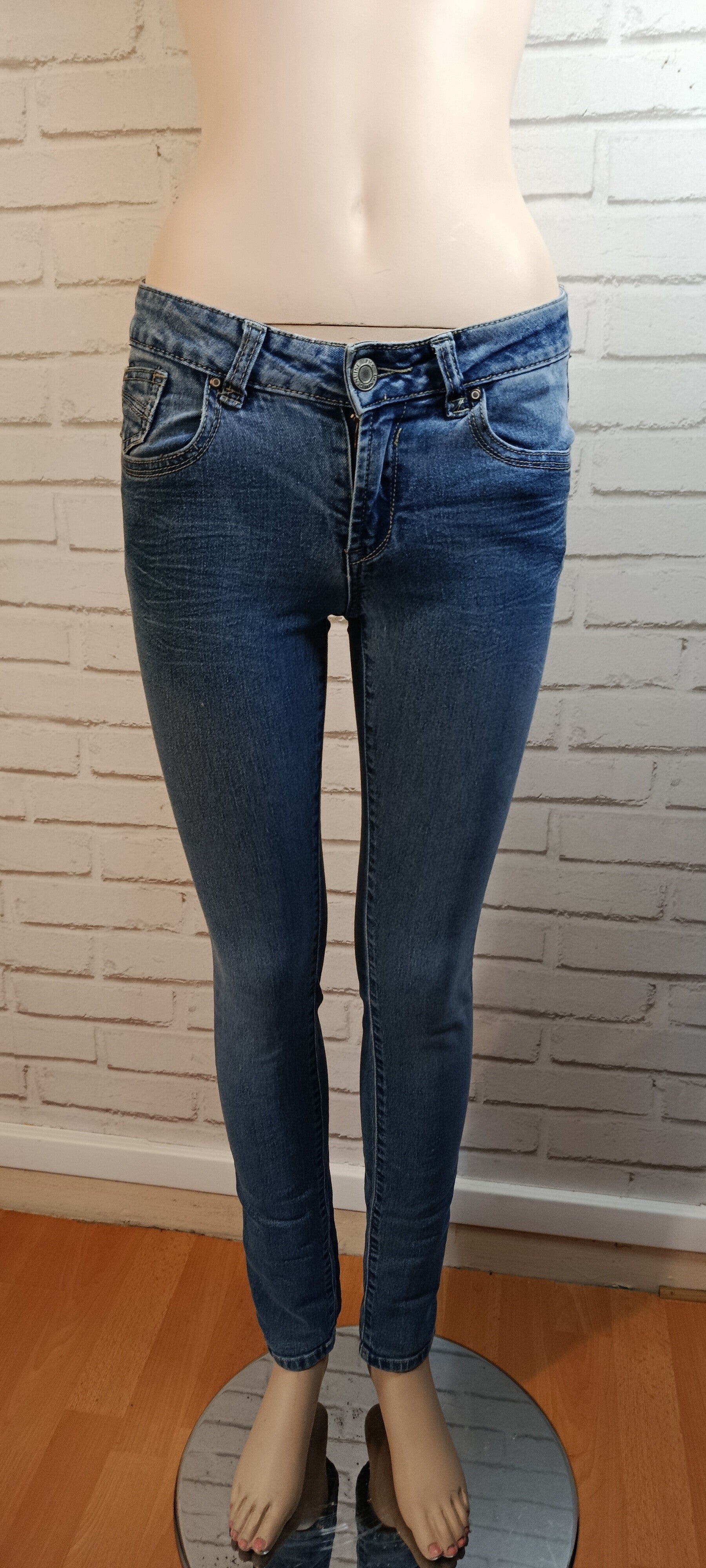 Jean taille basse en taille 34, à la coupe ajustée qui met en valeur la silhouette. Confectionné en denim bleu, il offre un style moderne et facile à porter au quotidien. Intemporel et confortable, il se marie aisément avec tous types de hauts.
