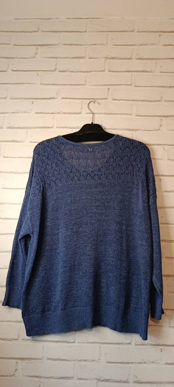 Ce pull ajouré bleu en taille 44 séduit par son style léger et féminin. Son jeu de mailles ajourées apporte une touche d’originalité tout en laissant respirer la matière, idéal pour la mi-saison. Sa coupe confortable met la silhouette en valeur sans la marquer, et sa couleur bleue apporte fraîcheur et luminosité à la tenue. Facile à porter sur un débardeur ou une chemise, il s’adapte aussi bien à un look décontracté qu’à une allure plus élégante.