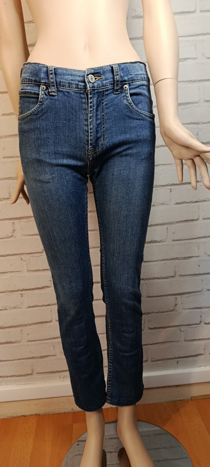 Jean Levi’s bleu denim à la coupe droite et ajustée, offrant un style intemporel et polyvalent. Taille classique, fermeture zippée avec bouton métallique et poches traditionnelles. Confortable et facile à associer, il s’adapte aussi bien à une tenue décontractée qu’à un look plus habillé.