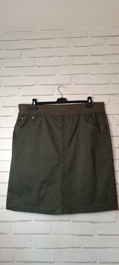 Cette jupe stretch vert kaki en taille 48 allie confort et style au quotidien. Sa matière souple épouse la silhouette sans la contraindre, tandis que la taille élastiquée assure un maintien agréable et une grande liberté de mouvement. Sa teinte kaki, facile à assortir, apporte une touche moderne et naturelle à la tenue. Idéale avec un t-shirt, un chemisier ou un pull léger, elle se porte aussi bien en version décontractée qu’en look plus soigné.