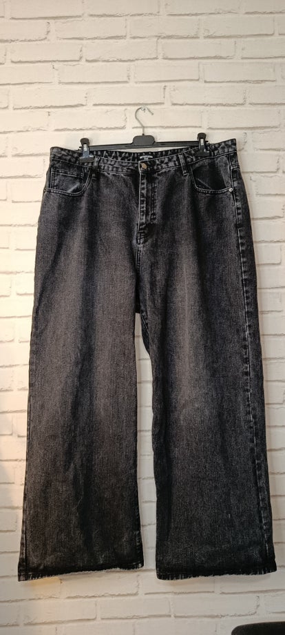 Un jean taille 48, à jambes larges, noir effet délavé, au style affirmé et contemporain. Sa coupe ample au niveau des jambes offre une silhouette fluide et confortable, tout en apportant une touche tendance inspirée des coupes wide-leg. La taille 48 assure un ajustement adapté, avec une ceinture structurée dotée de passants, d’une fermeture par bouton et zip, et de poches classiques à l’avant et à l’arrière