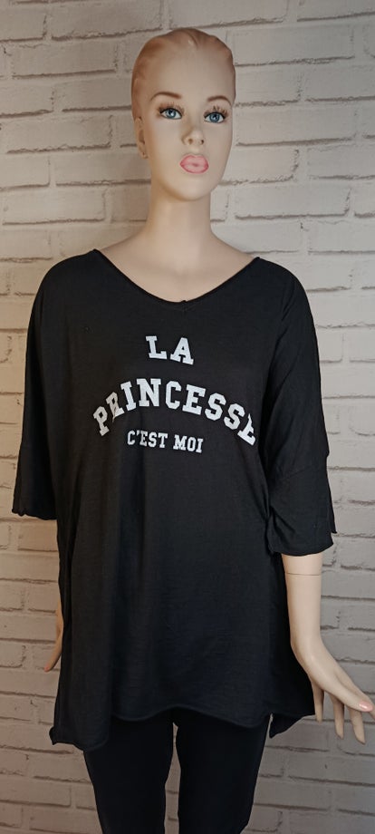 Il est décoré d’une inscription « La princesse c’est moi », qui apporte une touche ludique et affirmée à la tenue.